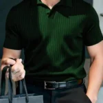 Be the first to review “Men’s Slim Fit Ribbed Knit Polo Shirt with Pointed Collar”